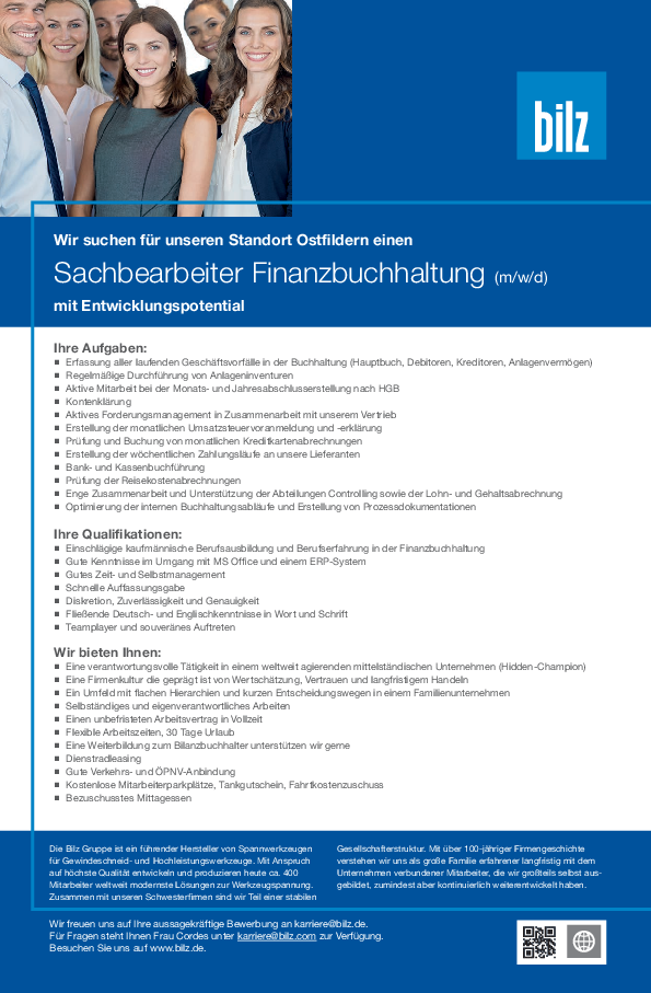 Werden auch Sie Teil des erfolgreichen Bilz-Teams und bewerben Sie sich noch heute auf unsere aktuellen Stellenausschreibungen. Aktuell keine passende Stellenausschreibung auf unseren Seiten gefunden?